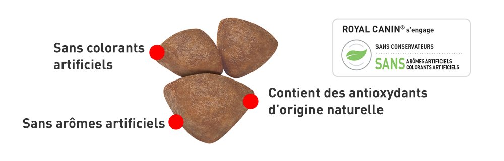 Les croquettes sont riches en nutriments et leur taille facilite la mastication. Leur texture favorise la santé dentaire grâce à leur effet de brossage des dents. Les aliments humides présentent naturellement une teneur plus élevée en eau, contribuant à la bonne santé du système urinaire et au maintien d'un poids sain.