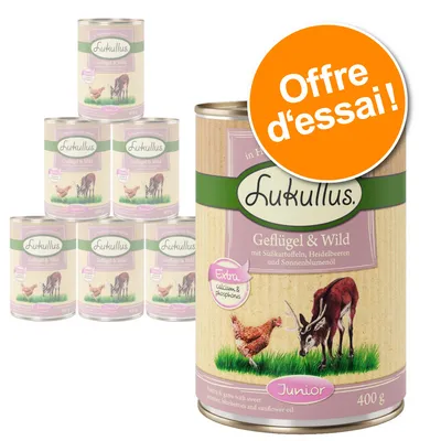 Profitez de notre offre d'essai pour tester les trois vaiétés Lukullus Junior réunies dans ce lot mixte de 6 x 400 g à prix découverte !